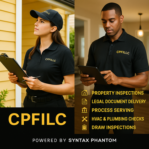 Certified Property Field Inspector LLC (CPFILLC) offers a comprehensive range of professional field services tailored for property owners, businesses, and legal professionals. Our experienced and verified field agents utilize cutting-edge technology to deliver timely, accurate, and trustworthy results.